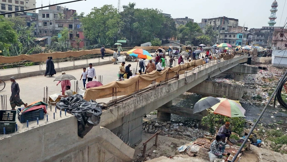 অন্যদিকে, নির্মাণ কাজ দীর্ঘসূত্রতায় পড়ে থাকায় ব্রিজটির অ্যাপ্রোচ সড়কের দুই পাশ দখল করে নিয়েছে অবৈধ দখলদাররা। সিএনজি ও চার্জার অটোরিকশা চালকদের একটি সিন্ডিকেট সড়কের বড় অংশ দখল করে রেখেছে। এছাড়া ব্রিজের পাশের ওয়াকওয়েও ভ্রাম্যমাণ দোকানিদের দখলে চলে গেছে।