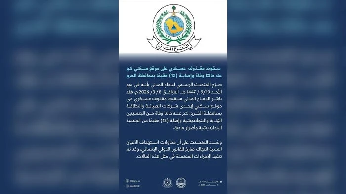 রোববার (৮ মার্চ) সৌদি সিভিল ডিফেন্স এ তথ্য জানিয়েছে।