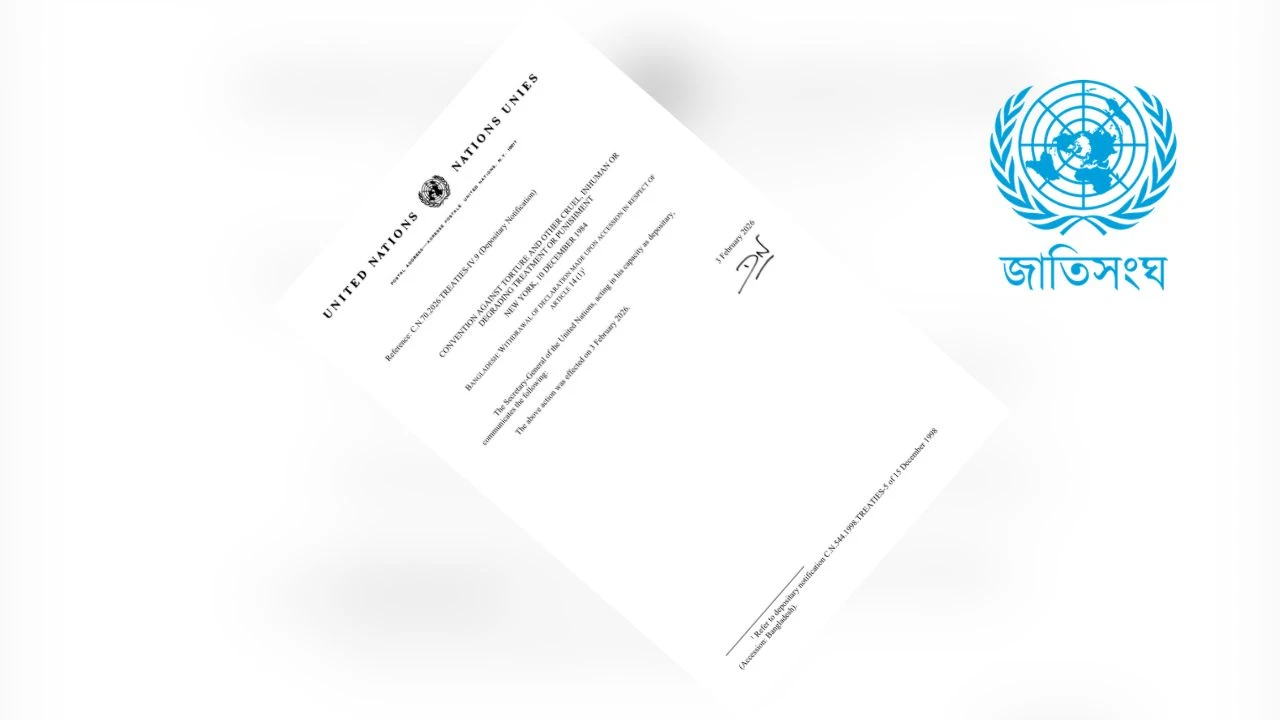 এতে বলা হয়, গত ২৯ ডিসেম্বর প্রধান উপদেষ্টা অধ্যাপক মুহাম্মদ ইউনূসের সভাপতিত্বে উপদেষ্টা পরিষদের সাপ্তাহিক বৈঠকে ‘নির্যাতন এবং অন্যান্য নিষ্ঠুর, অমানবিক বা অবমাননাকর আচরণ বা শাস্তিবিরোধী কনভেনশন’ (সিএটি)-এর ১৪ (১) অনুচ্ছেদে দেওয়া ডিক্লেয়ারেশন প্রত্যাহারের প্রস্তাব অনুমোদন করা হয়েছিল।