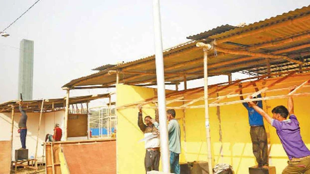 বাংলা একাডেমি ও সোহরাওয়ার্দী উদ্যানে এখন স্টল তৈরিতে ব্যস্ত কারিগররা। তাঁরা জানালেন, নির্দিষ্ট সময়ে কাজ শেষ করতে হবে। তাই দম ফেলারও সময় নেই তাঁদের। কেউ করছেন রঙের কাজ, কেউ ব্যস্ত বিদ্যুতের লাইন তৈরিতে। বসে থাকার জো নেই কারও।