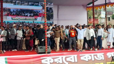 আহমেদ তালুকদার, জোট প্রার্থীসহ কেন্দ্রীয় ও স্থানীয় নেতারা মঞ্চে উপস্থিত ছিলেন। দুপুর