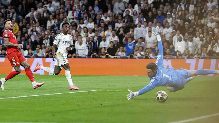 থাকা ভিনিসিয়ুস। মাঝমাঠ থেকে ভালভের্দের থ্রু পাস ধরে, ডি-বক্সে ঢুকে কোনাকুনি শটে
