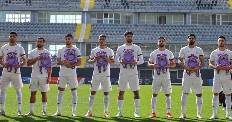 স্কুলব্যাগ হাতে নিজ দেশের নিহত শিক্ষার্থীদের স্মরণে ইরানি ফুটবলাররা