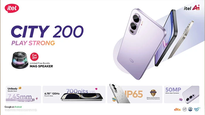 স্লিম ডিজাইন, এআই ফিচার ও আল্ট্রা ফ্রিলিংক প্রযুক্তিসহ সাশ্রয়ী দামে বাজারে এলো আইটেলের সিটি ২০০